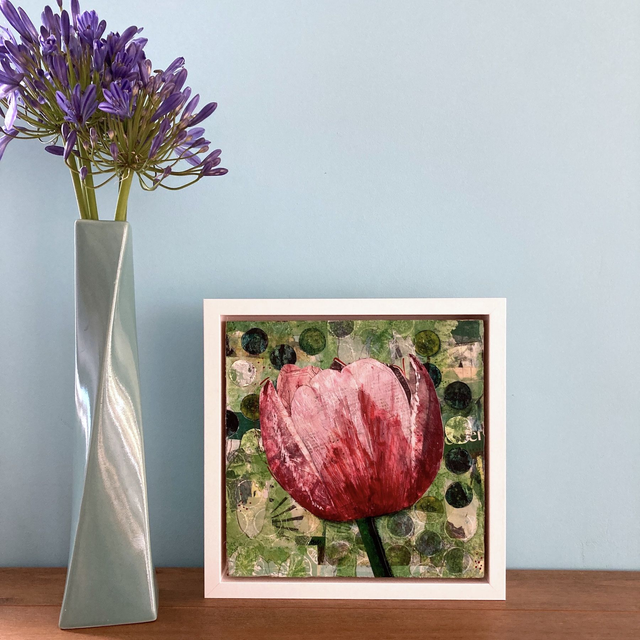 10” x 10” (25.4cm x 25.4cm) acrylic, collage and mixed-media on deep cradled wood panel